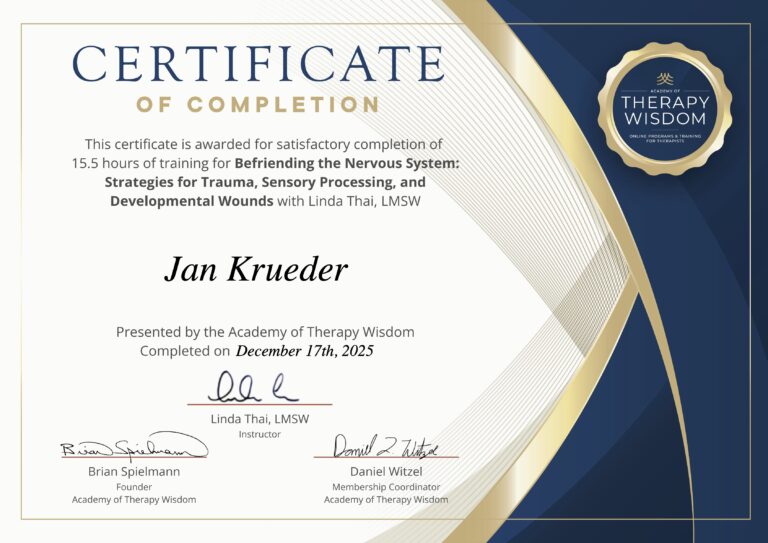 • Trauma informed and trained in nervous system work by the Academy of Therapy Wisdom